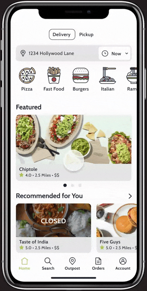 To take this experience to another level, they wanted to implement a new Outpost feature. This would allow students to order meals ahead by days up to a full week that would be delivered to a campus outpost - for free. They could plan meals to fit within their class schedules or order a day ahead just for that free delivery.